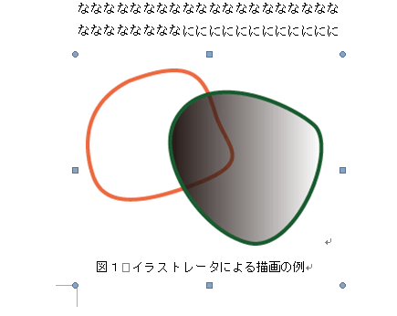 図を作成したツールで、図全体を、Ctrl-C などのキー操作によりクリップボードにコピーします。次に、WORD で先程作った枠の中をクリックします。すると、枠に予め書かれていた注意書きが選択されます。