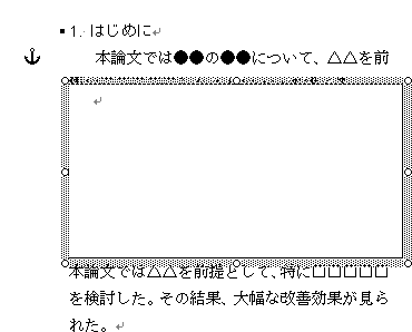 また、碇は段落にくっついています。碇のくっついている段落のテキストを消去すると、図も消えてしまうので注意しましょう。