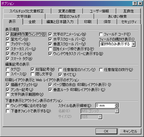 WORD のメニューから、ツール→オプション...を選び、下記の画面を出します。