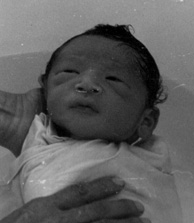 - 生後2日目 風呂にはいっている。まだ猿のような顔。