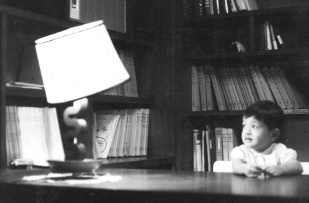 - 2歳3か月 祖父の書斎にて。非常に気に入っている写真です。将来研究者になる予感?